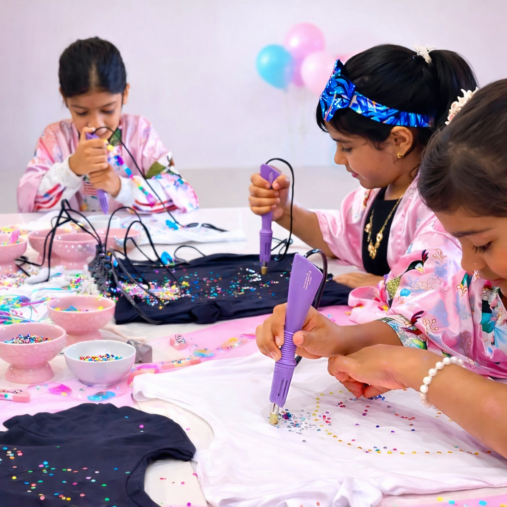 Each Sassy Chic will decorate a T-Shirt with assorted Crystal gems using a Heat Fix Tool.